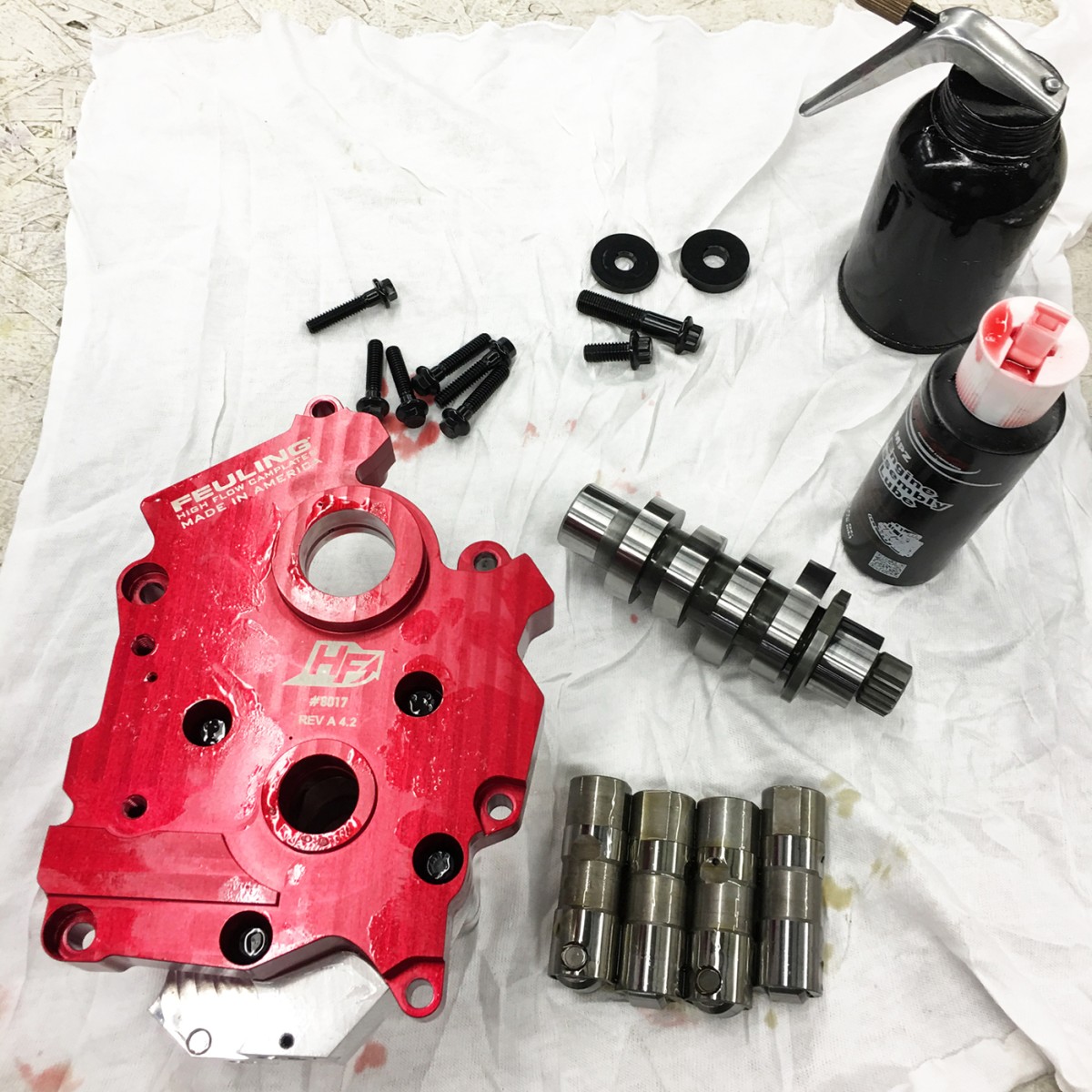 FEULING® camshaft kits for Milwaukee Eight engines include chain drive camshaft, lifters and a cam installation kit that includes cam bearing, cam/crank hardware and a gasket/O-ring kit that allows for install of the factory one piece pushrods and or our optional and recommended heavy duty HP+® 0.165" wall one piece pushrods - see # 4087