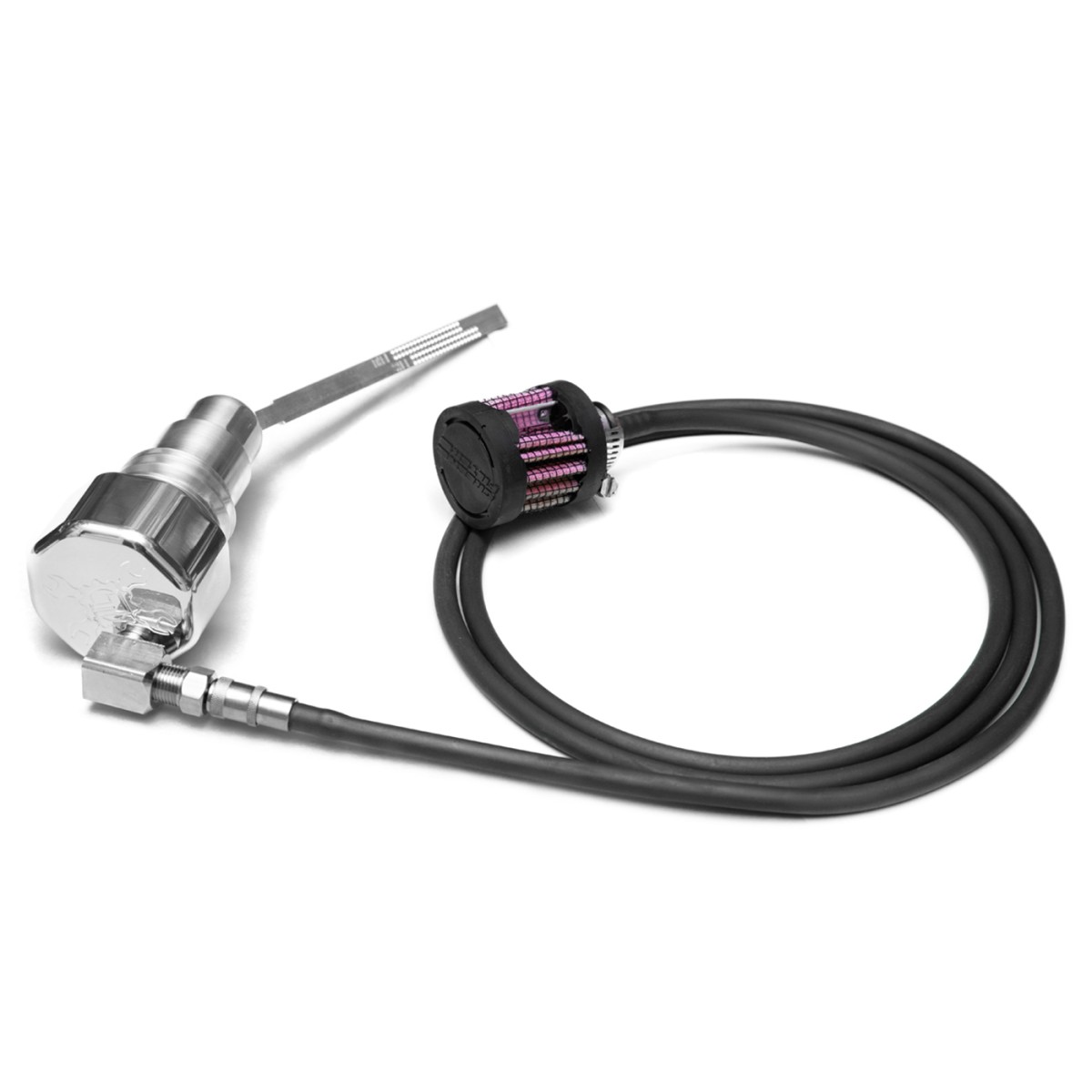 OPTION 2.) Quick disconnect coupler fitting with rubber hose and filter element. This option will run any excessive oil misting/residue through the line and into the filter element. However this option does requires disconnecting the fitting in order to check the oil. This is Feuling's preferred option as it breaths more than option 1.