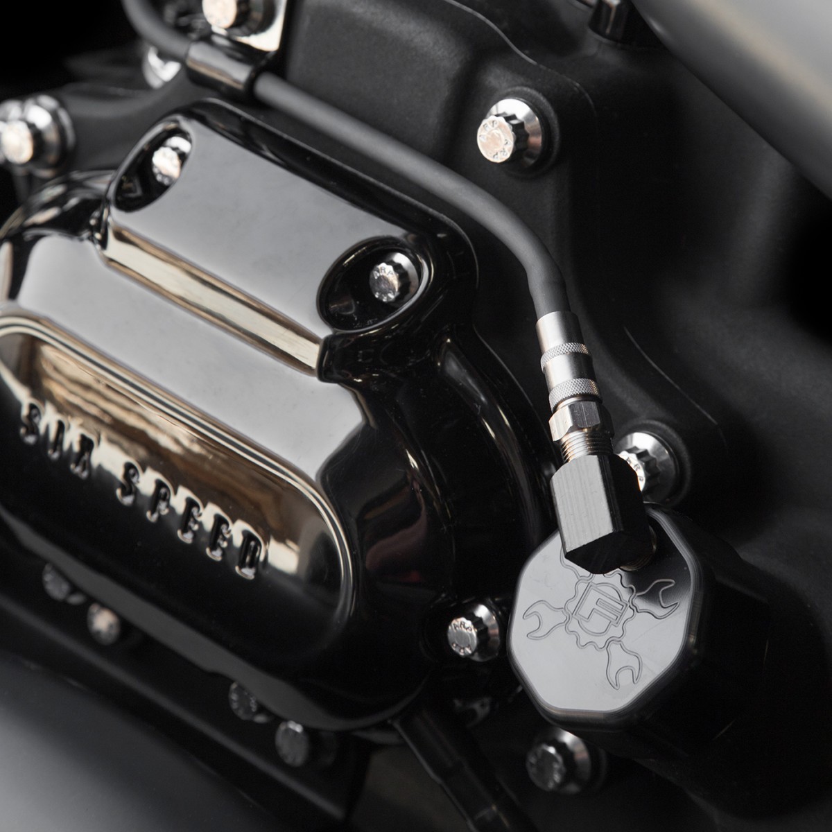 NOTE: Our in house testing shows venting the air cleaner to atmosphere may be problematic resulting in oil carry over/misting out of the breathers. When air filter venting is accompanied with the use of oil tank venting such as the Feuling vented dipstick and or a vented transmission top cover the oil carry over/misting can be increased.