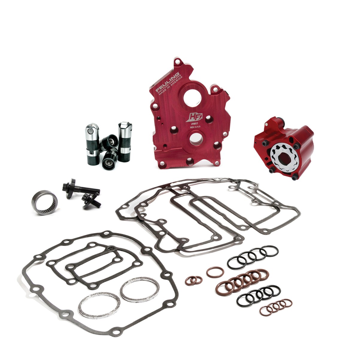 FEULING® CENTER/WATER COOLED RACE SERIES oiling system kit with SHORT travel lifters combine all the needed components to finish your Milwaukee Eight® engine's oiling system under 1 Part #. FEULING® oiling system kits increase oil pressure, oil volume, engine oil flow and return oil scavenging
