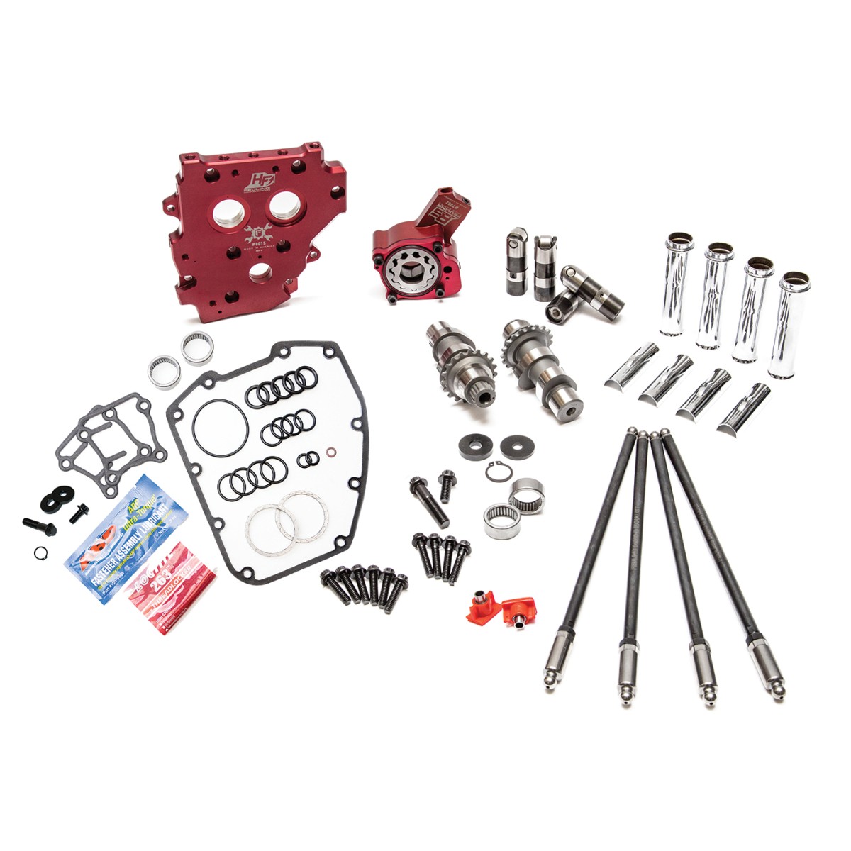 Fits:TC '07-'17 Includes '06 Dyna, Chain Drive, Includes 630 Reaper™ Camshafts #1012, Cam Install kit #2070, RACE SERIES™ Short Travel Lifters #4017ST, Quick Install Adjustable Pushrods #4096, Chrome pushrod tubes #4095, RACE SERIES™ oil pump #7062, camplate #8015 and ARP® Camplate/Oil Pump Fasteners #8020, Replacement tensioner pads #8078.