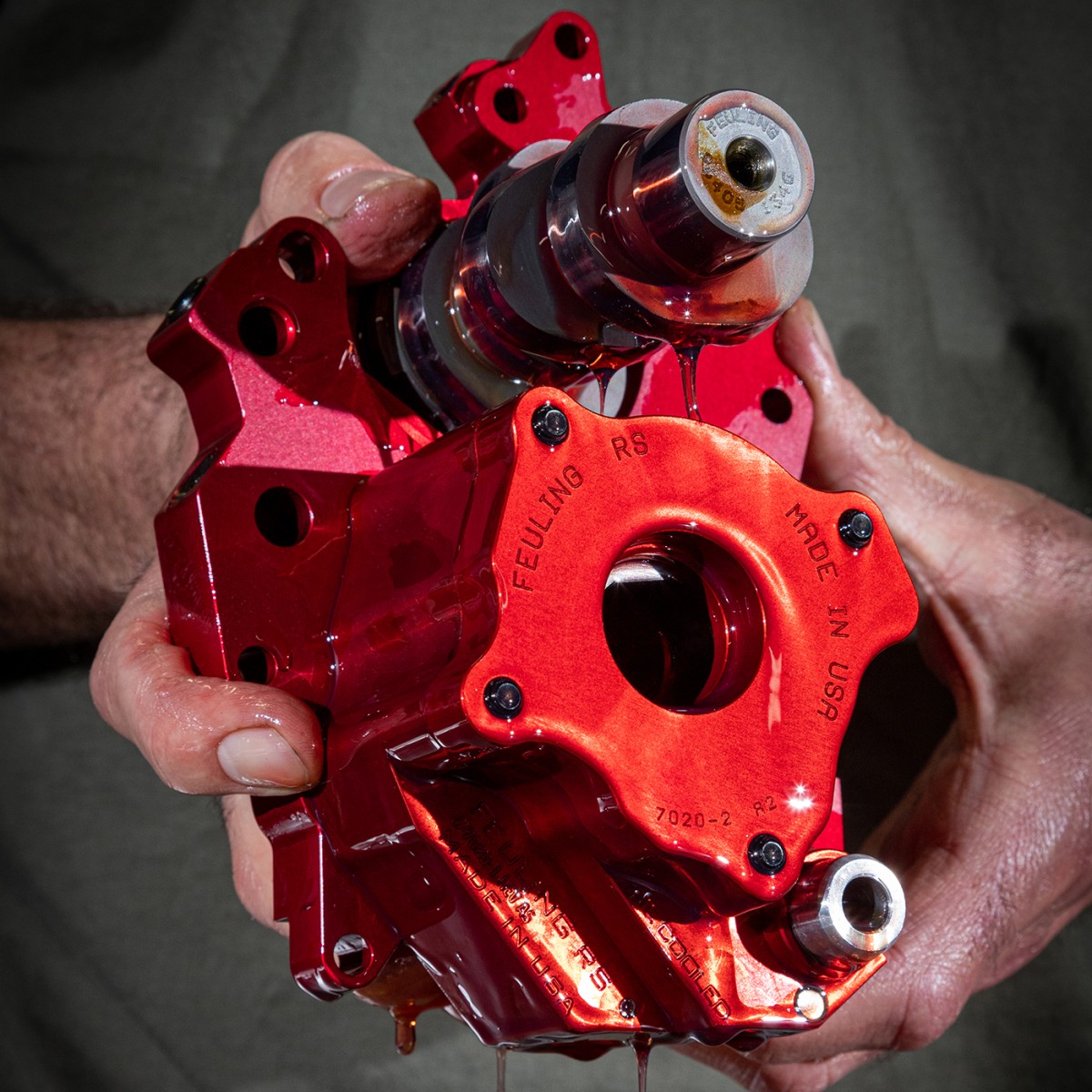 • Billet 7075 aluminum oil pump which is 50% harder and stronger than the factory pump holding tighter tolerances under temperature, deeper scavenge kidneys over HP+ oil pump.