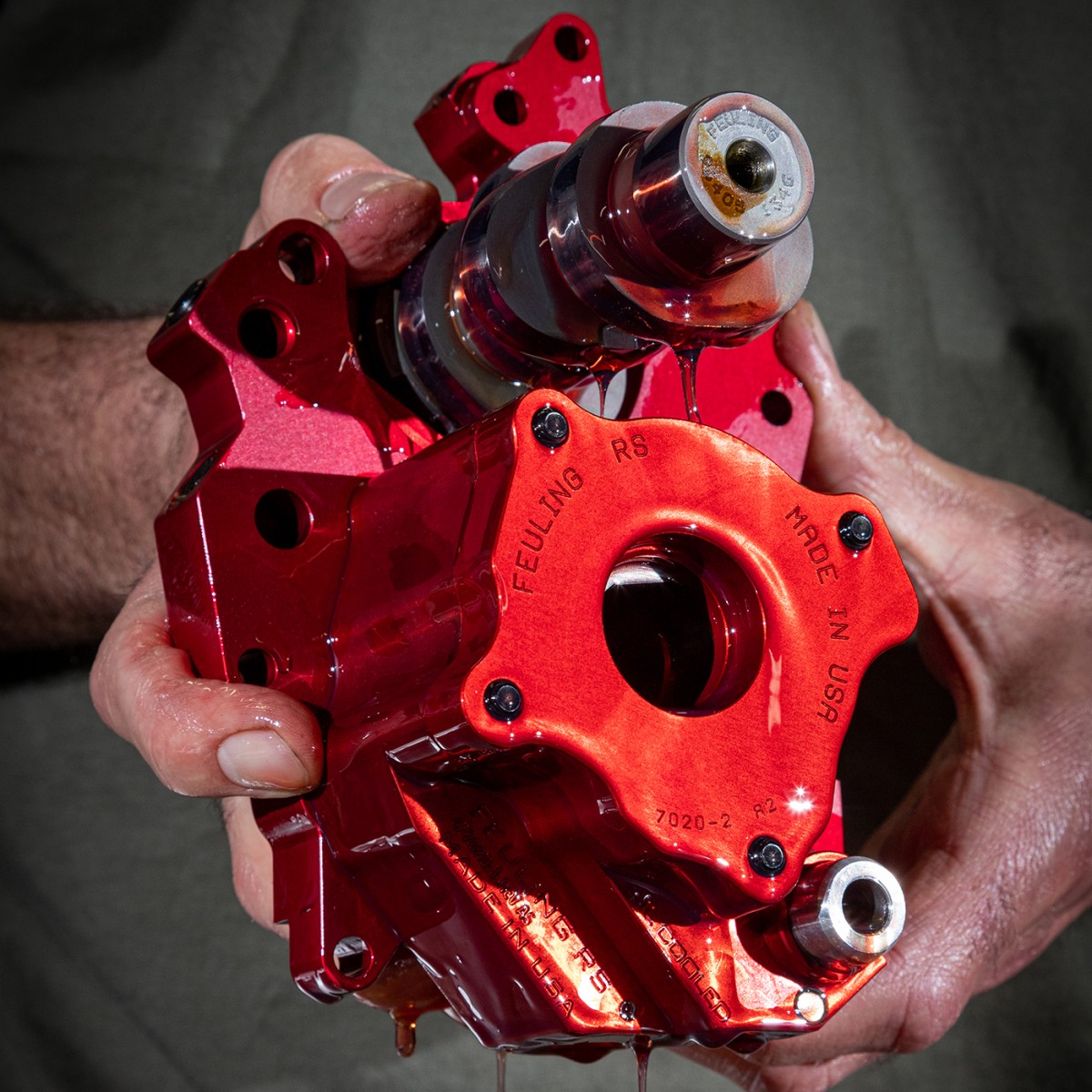 • Billet 7075 aluminum oil pump which is 50% harder and stronger than the factory pump holding tighter tolerances under temperature, deeper scavenge kidneys over HP+ oil pump.