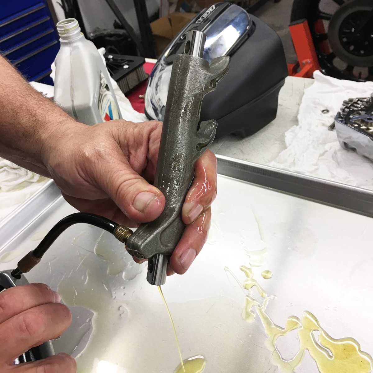 This tool easily pumps up hydraulic lifters, using thin 5 or 10 weight motor oil or automatic transmission fluid to pump oil into the lifter side feed hole to push all of the air out of the lifter internals. You will see air bubbles come out the top pushrod seat hole, It's best to work the oil back and forth from the side feed hole and back through the top pushrod seat hole to work all the air out. This will ensure the lifter is fully pumped up and will not run dry on initial start up.