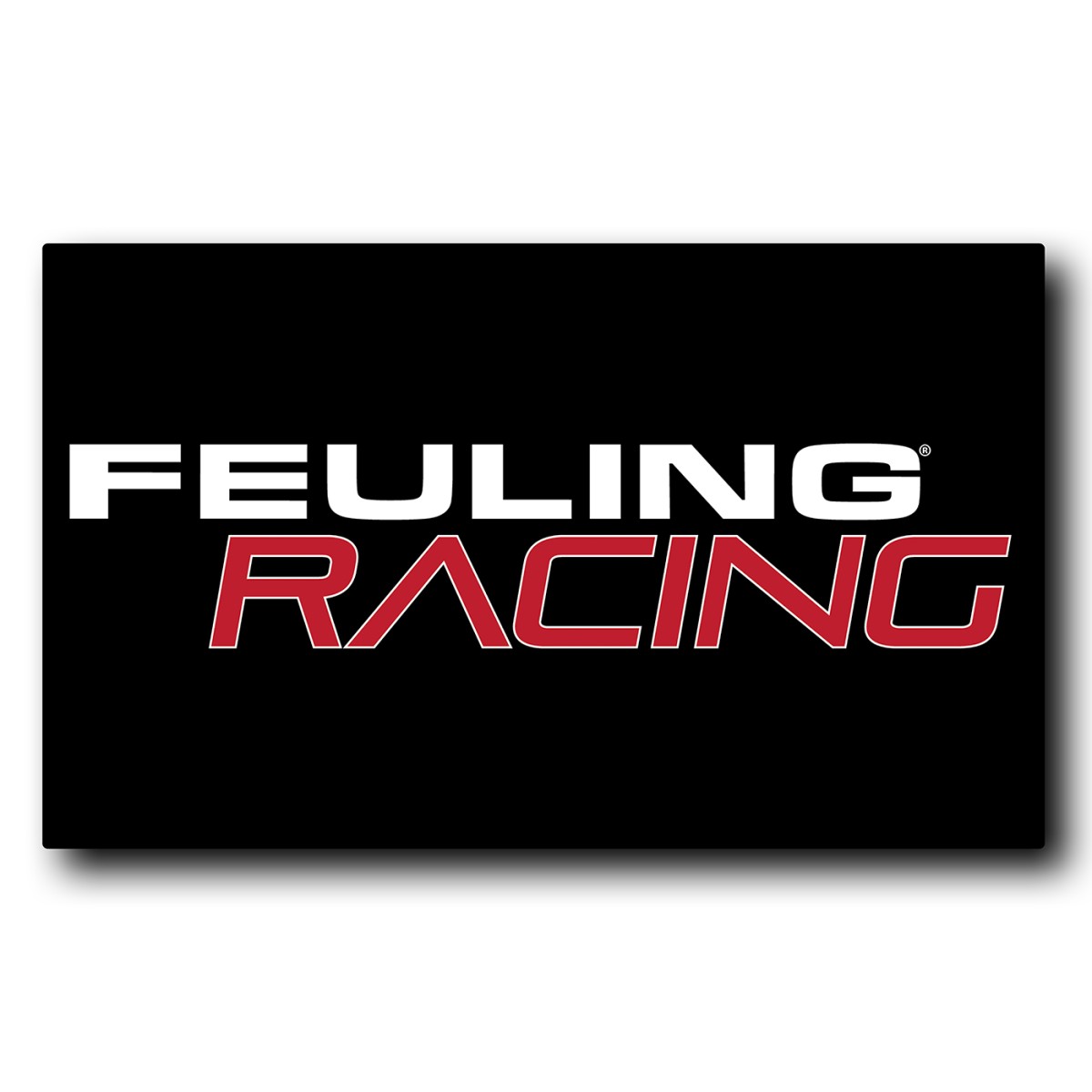 Black “FEULING RACING” banner featuring loops at corners for easy mounting