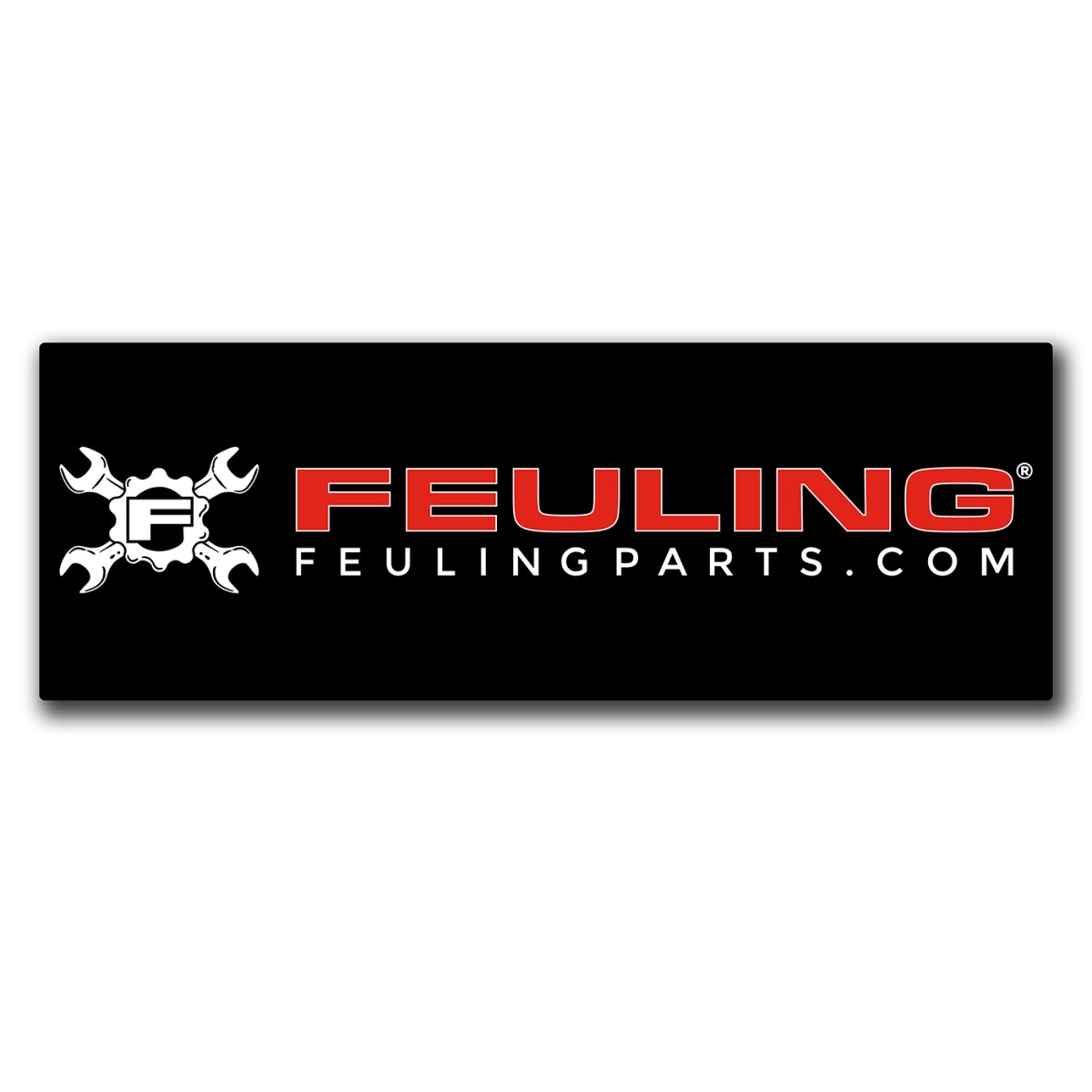 Black high quality cloth banner with FEULING corporate logo featuring loops at each corner for easy mounting
