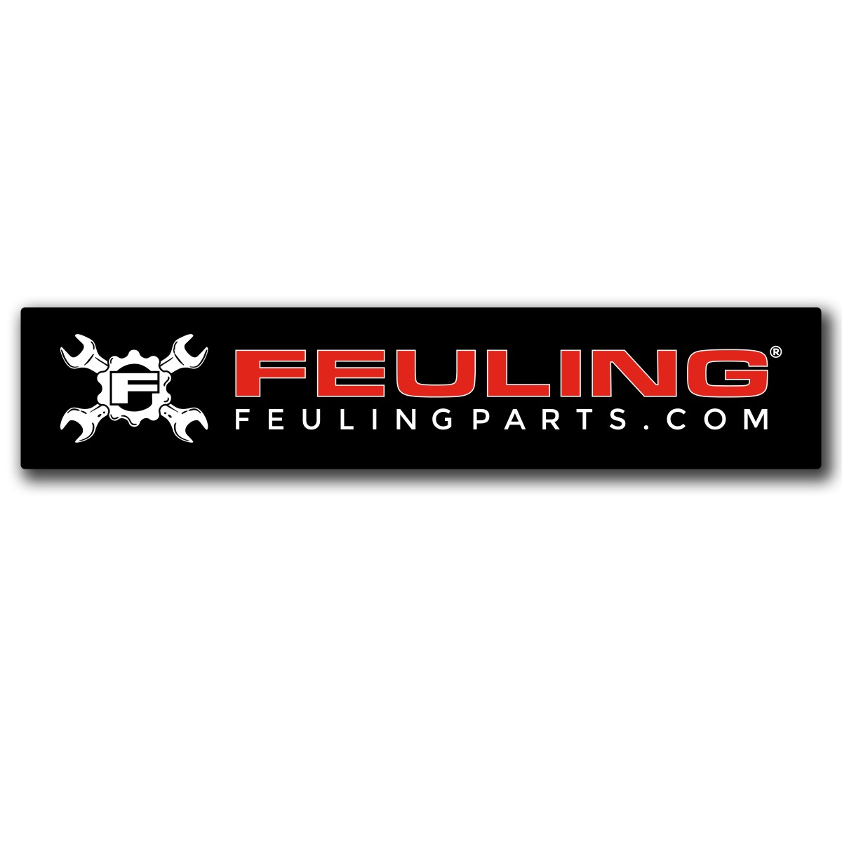 Black high quality cloth banner with FEULING corporate logo featuring loops at corners for easy mounting