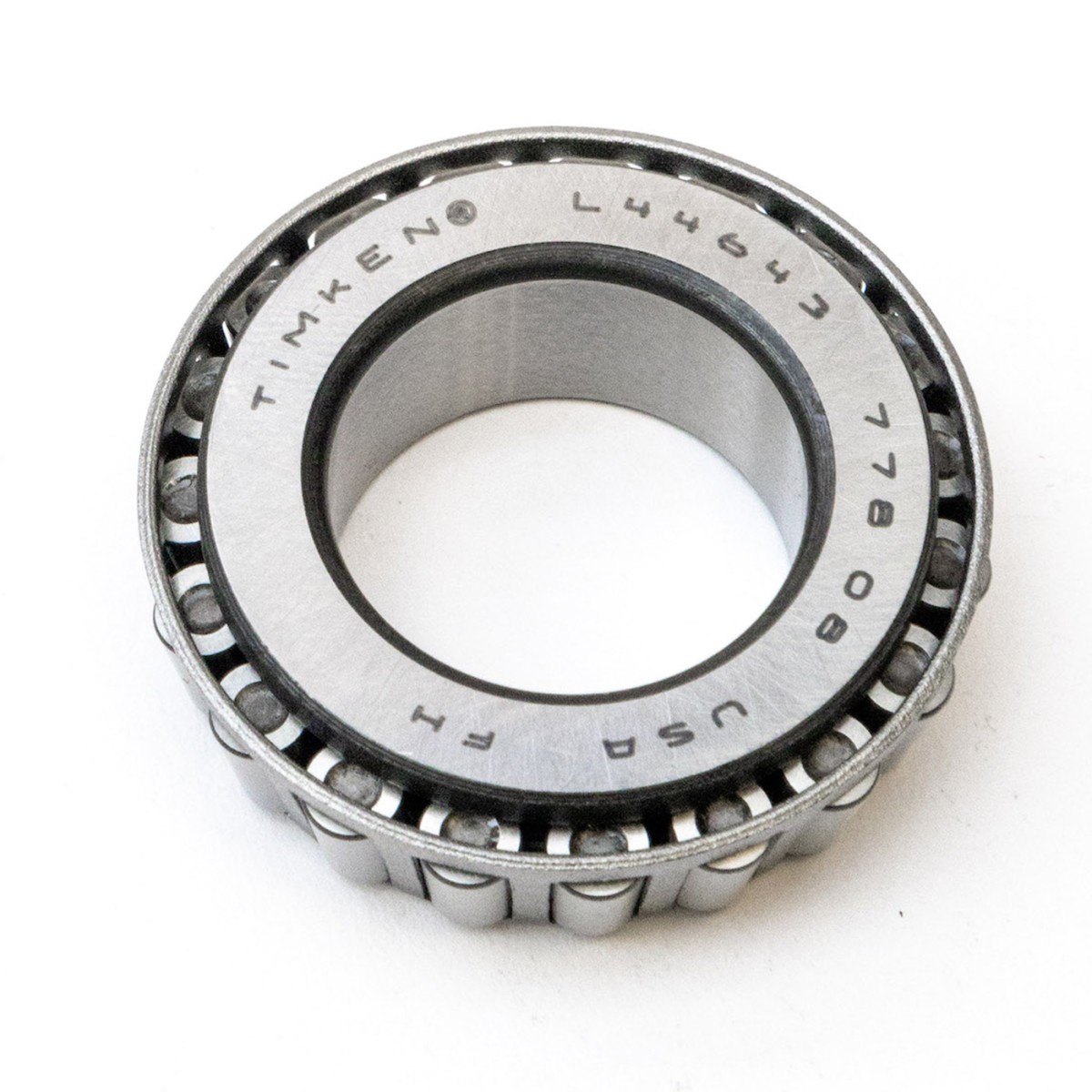 TIMKEN STEERING HEAD BEARING #L44643. Fits: 85 FX, 85-86 FXWG, 84-15 FXST, FLST, 86-22 XL, 84-00 FXR, 91-17 Dyna Glide, 84-13 FLT, FLHT, FLHR and 02-13 V-Rod