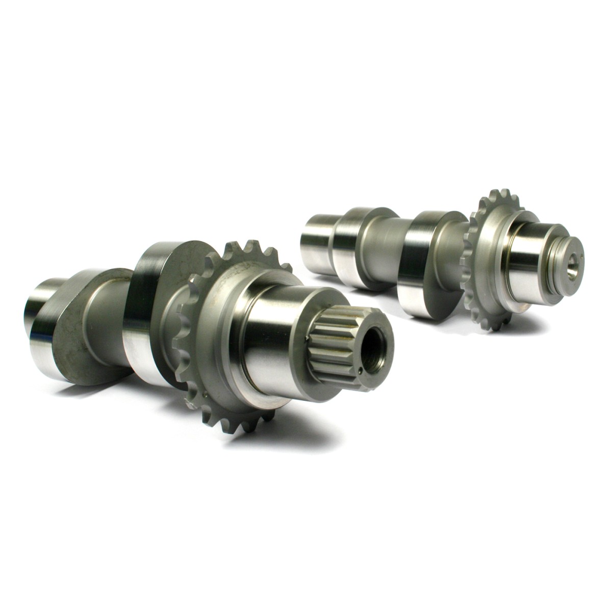Conversion camshafts for ’99-’06 Twin Cam engines utilize the ’99-’06 inner cam journals with the ’07-’16 outer cam journals allowing the use of the ’07-’16 camplates, oil pump, hydraulic chain tensioners and chain drive system.
