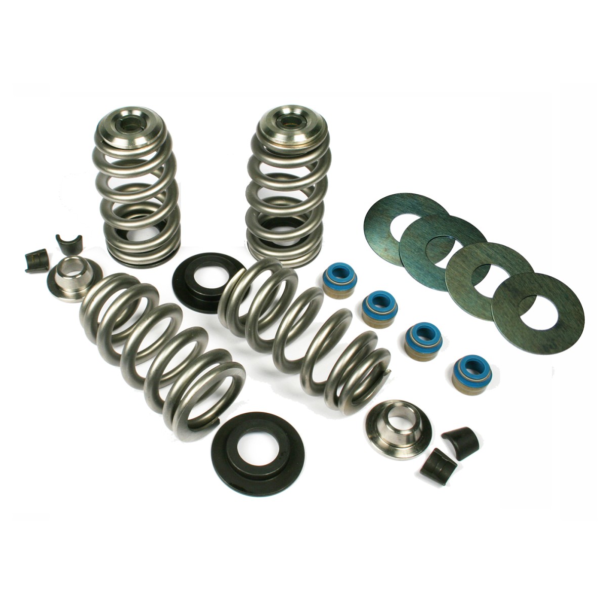 Fits:Twin Cam ’05-’17, XL '04-'22, XR 1200 '09-'13, 7 Degree, 7mm valve stem with stock triple keeper groove - Includes Springs, Ti Retainers, Seats, Seals, Keepers, seat shims