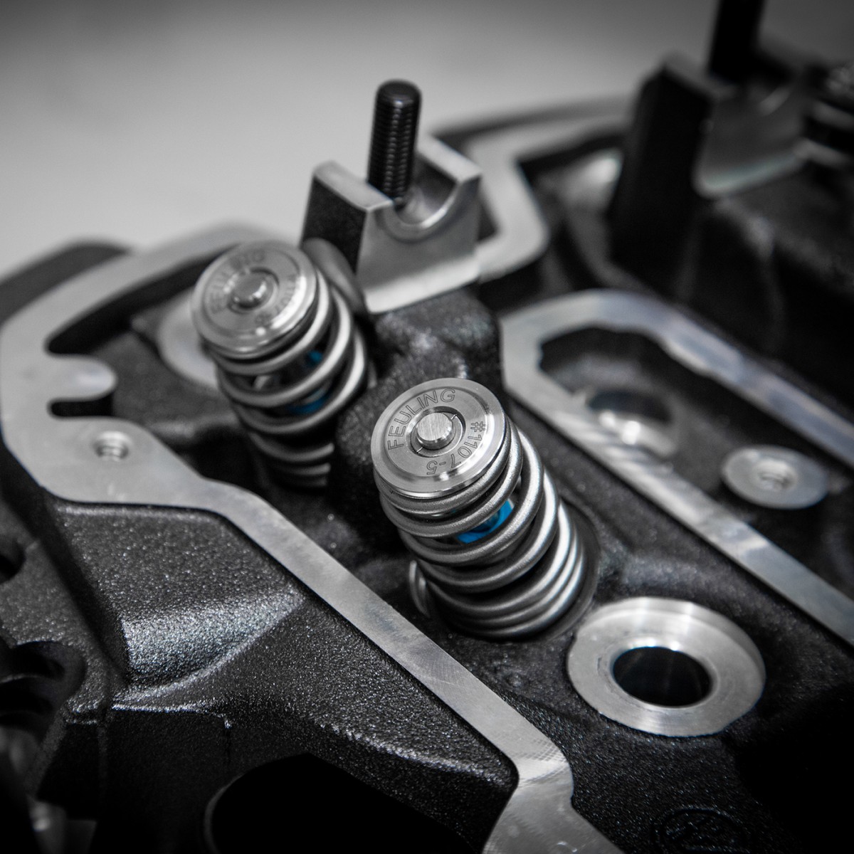 Kits include: FEULING® ENDURACE BEEHIVE® valve springs, machined spring seats, seat shims, valve locks and a set of premium Viton® valve seals equipped with a spring loaded valve stem wiper system. THIS KIT USES THE FACTORY STOCK STEEL RETAINERS, if Ti retainers are desired see spring kit #1108 or Ti retainer kit #1109