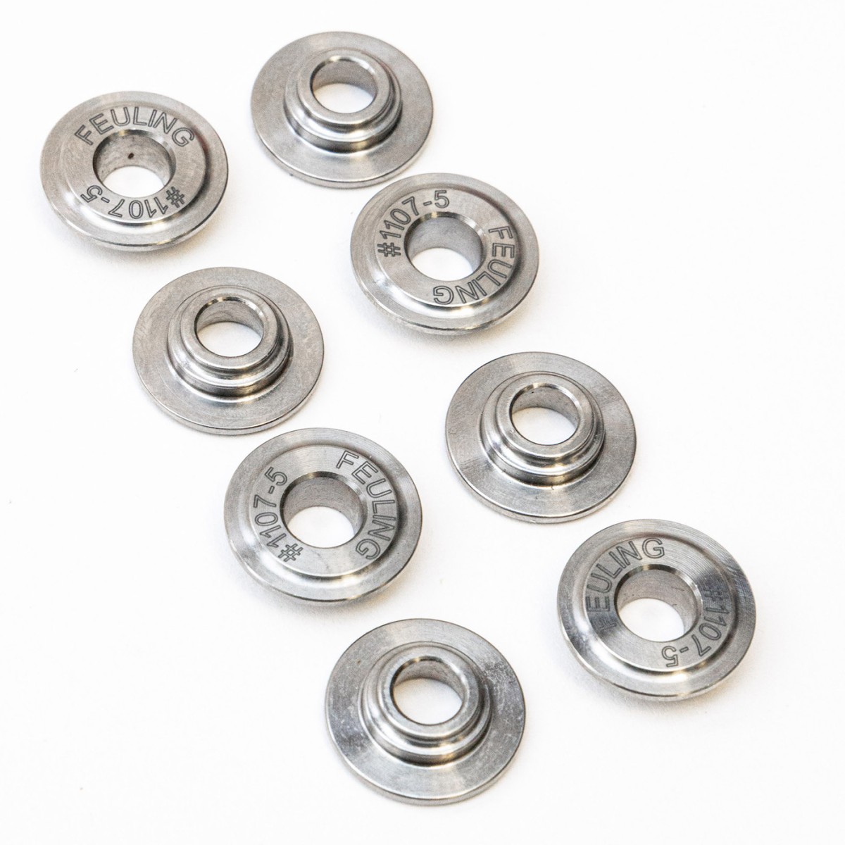Ti retainers fit Feuling Beehive Valvespring spring kit #1107 and or the factory and SE M8 valvesprings, stock height retainers (Qty. 8)
