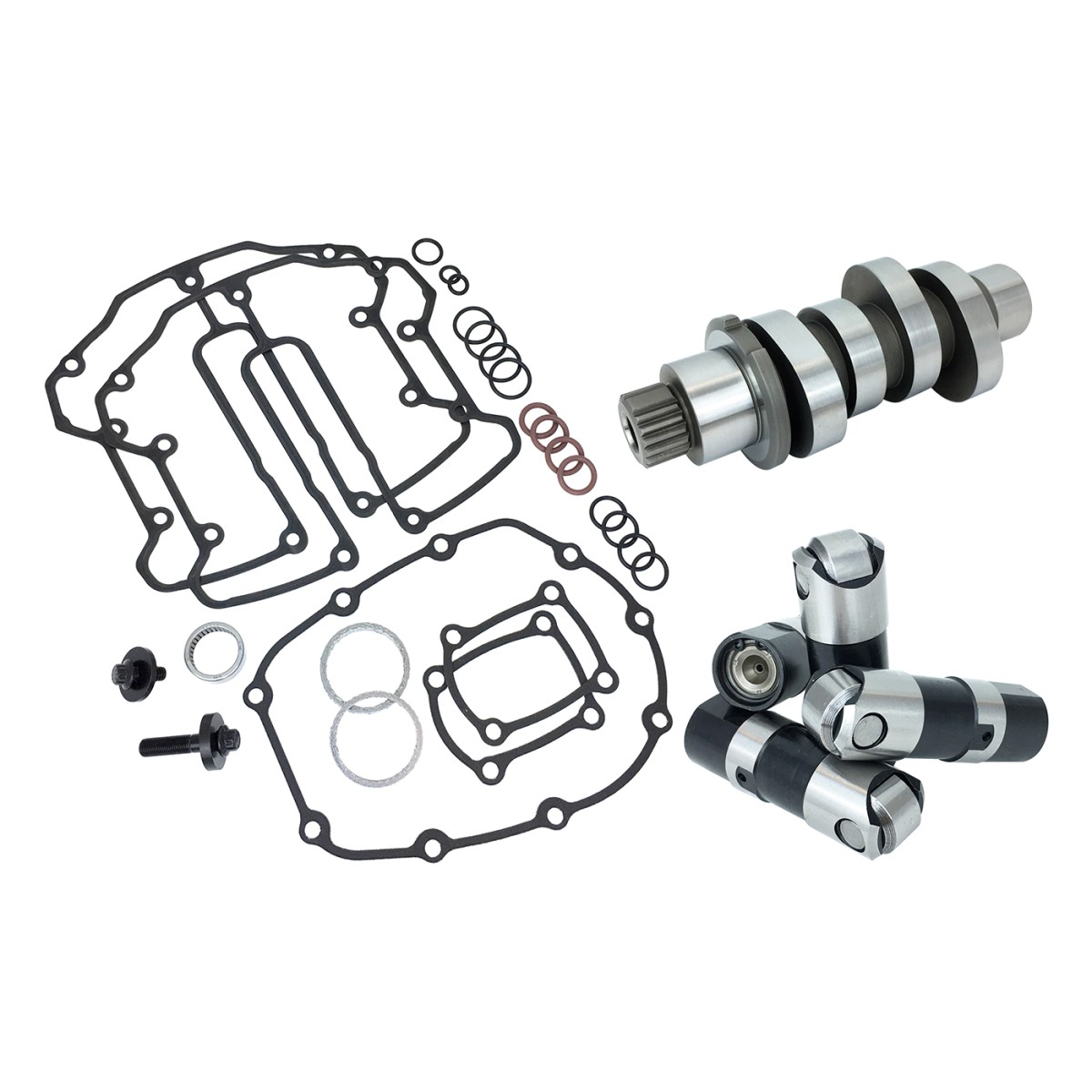 FEULING® camshaft kits for Milwaukee Eight engines include chain drive camshaft, lifters and a cam installation kit that includes cam bearing, cam/crank hardware and a gasket/O-ring kit that allows for install of the factory one piece pushrods and or our optional and recommended heavy duty HP+® 0.165" wall one piece pushrods - see # 4087