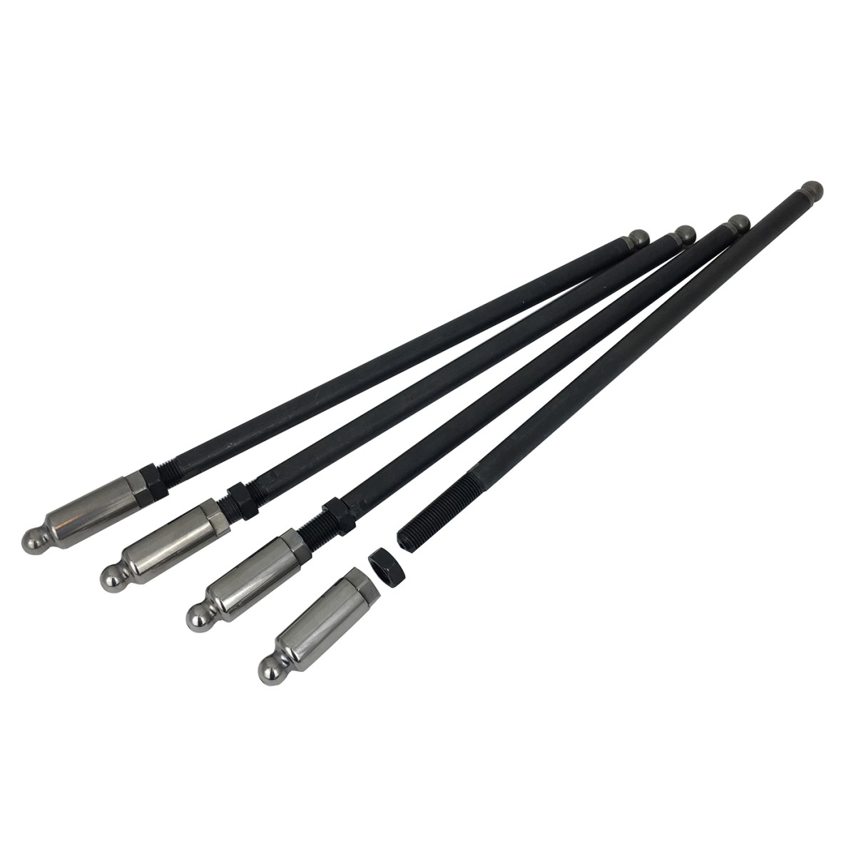 • Adjustable pushrods are 3/8” 4130 chrome moly tube and use a minimal adjustment parameter eliminating flex and loss of valve train-stability problems associated with most adjustable pushrods.