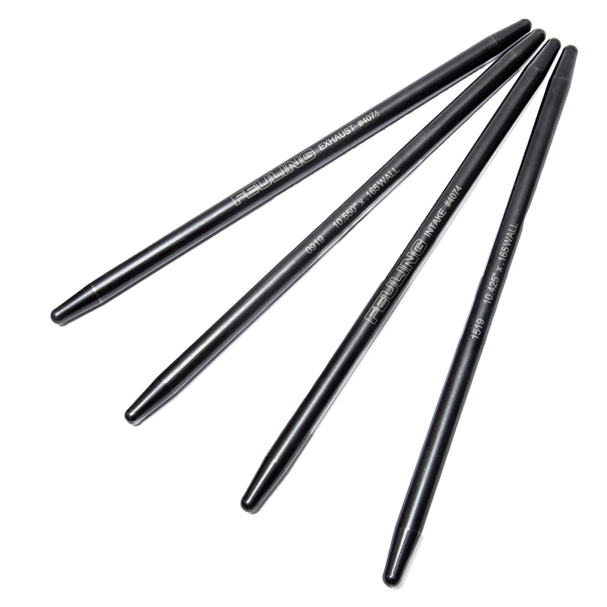 Fixed Length 4130 Chrome moly one piece pushrods with swedged formed ends. Heavy duty 7/16" diameter tube with 0.165" wall thickness, precision concentricity, heat treated with a black oxide finish. Intake and Exhaust pushrods are longer than stock and are designed to work with Feuling ST (Short Travel) lifters on stock base circle camshafts. These pushrods work with Feuling® 525, 543, 574 cam grinds matched with Feuling Short Travel lifters.
