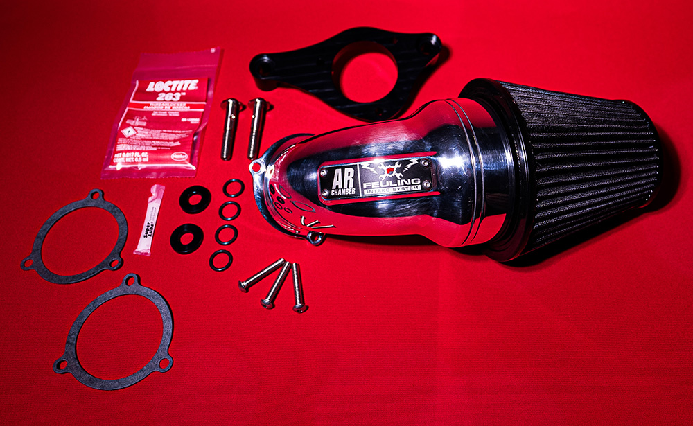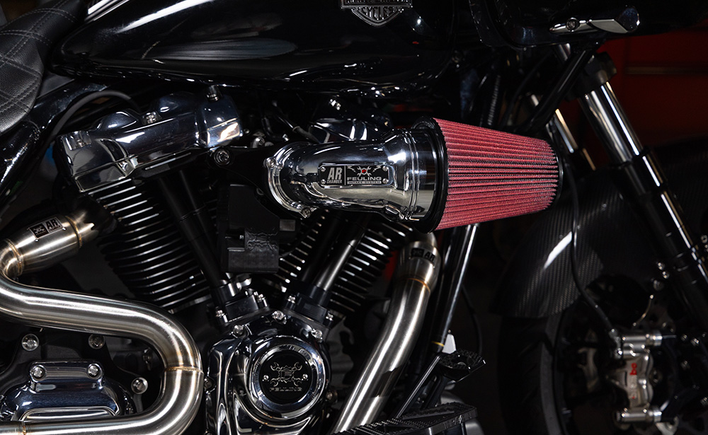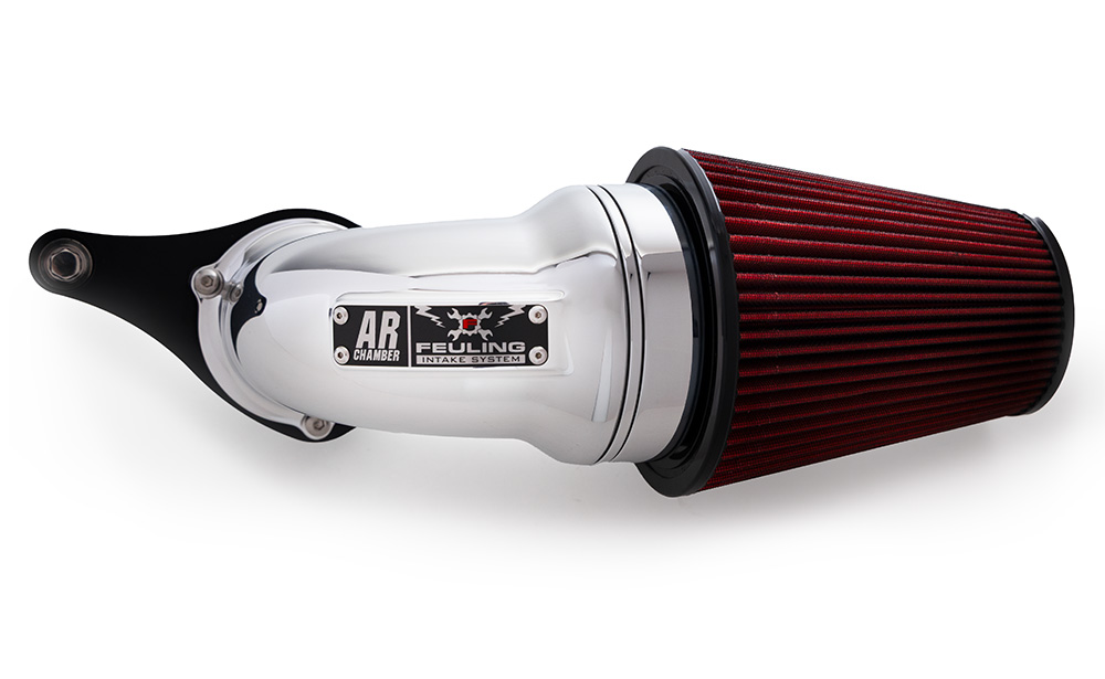 With years of experience designing improved cylinder heads, ports, combustion chambers and intake manifolds, brings light to a new bolt-on air cleaner design for Harley-Davidson motorcycles. The Feuling AR air cleaner lengthens the intake and delivers increased velocity and volume into the intake track.