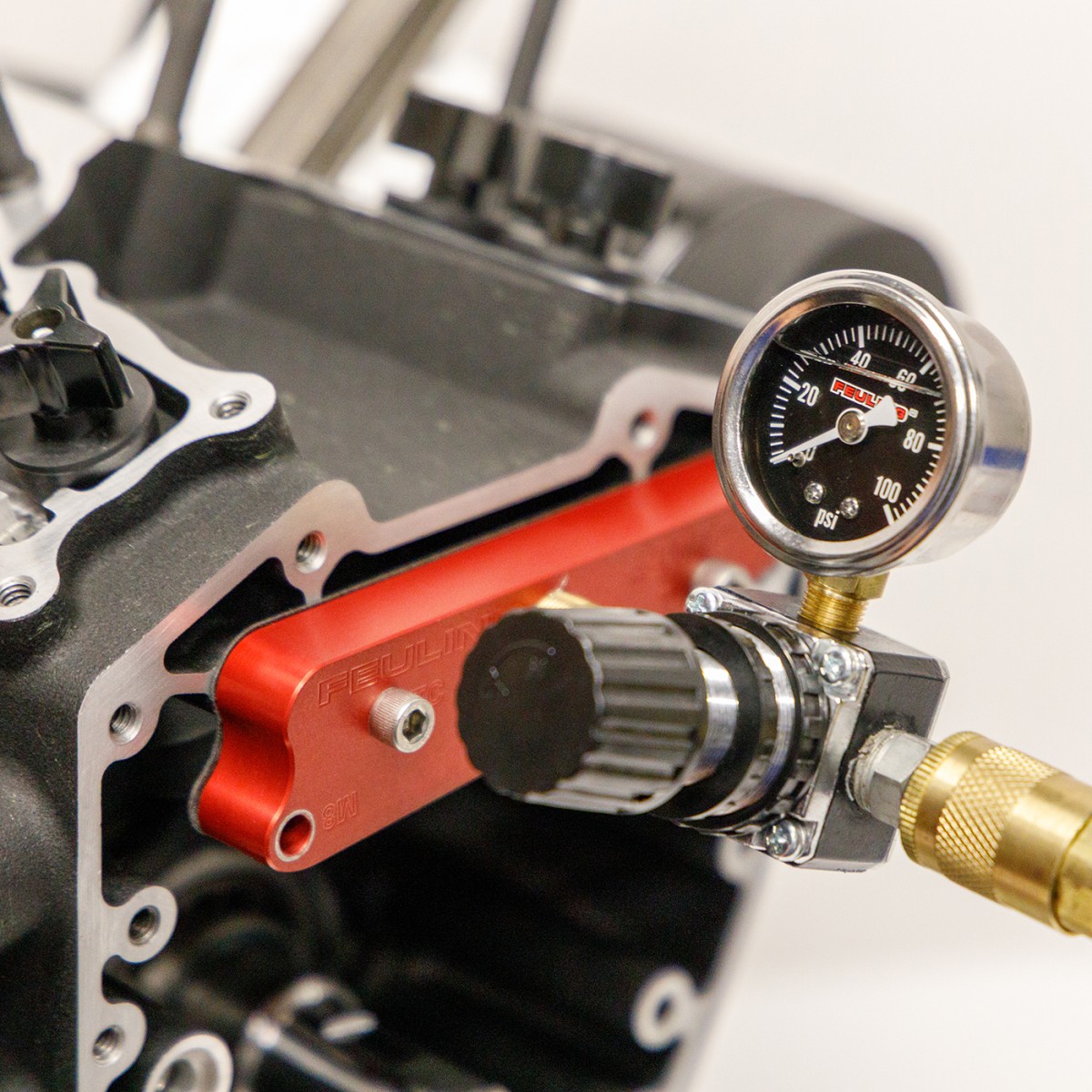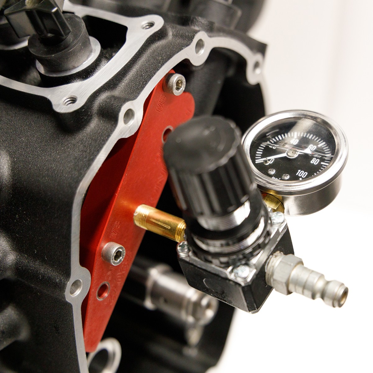 This tool allows you to test all Twin Cam and M8 piston cooling jets while the top end is still assembled. Can also be used with the top end disassembled to check for leaks at the piston cooling jet gasket or as a preemptive check while building an engine. Great preemptive check while installing a camshaft or oiling system to ensure the piston cooling jets are operating properly.