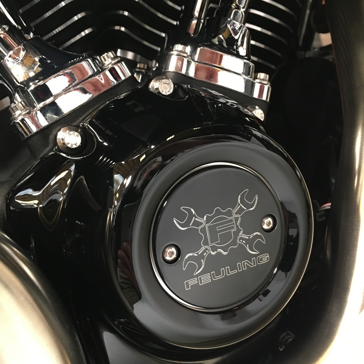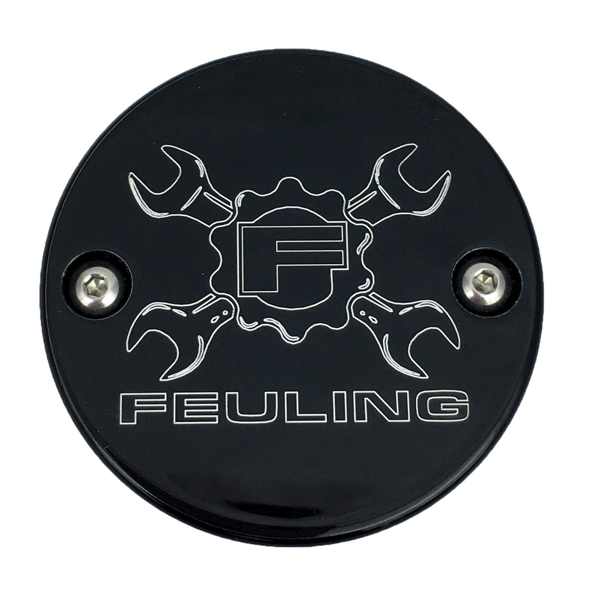 Dress your engine in style with a FEULING® points cover, machined from billet 6061 aluminum, bolts onto the factory cam cover, includes new stainless steel button head fasteners. Available in select finishes and logos, made in the U.S.A.