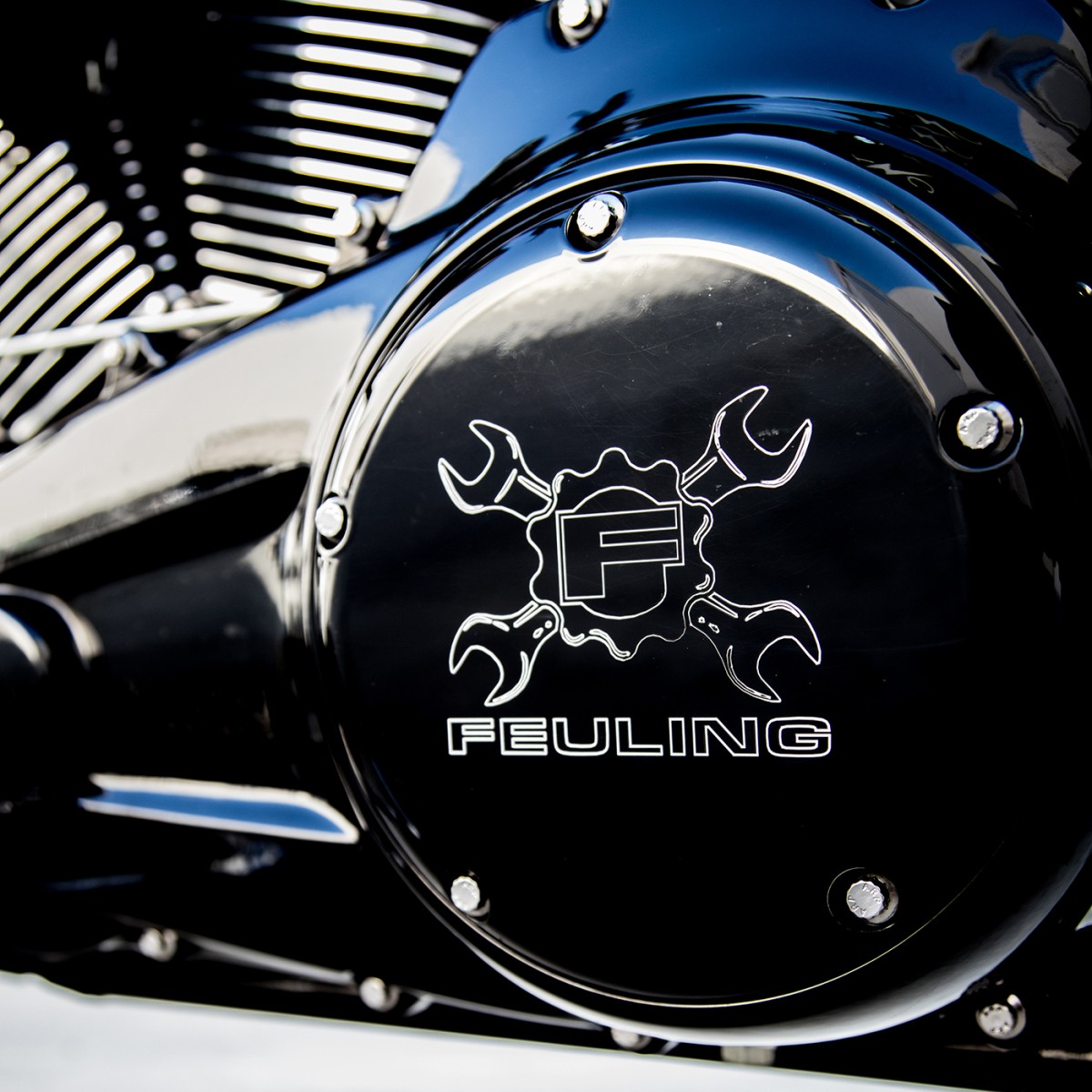 Dress your motorcycle in style with a FEULING® derby cover, machined from billet 6061 aluminum, bolts onto the factory primary cover, has machined relief for performance clutch clearance, includes gasket and new stainless steel 12 point hardware. Available in select finishes and logos, made in the U.S.A.