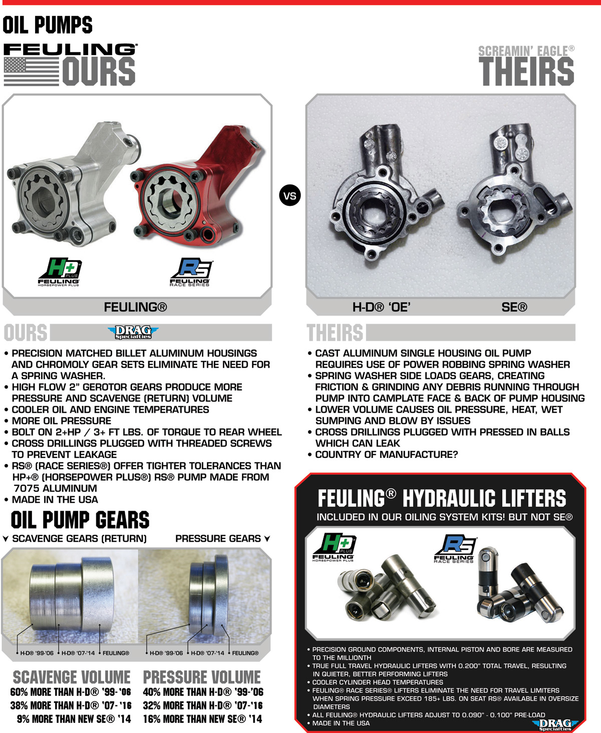 - C = Feuling has 42% More scavenging with MATCHED OIL PASSAGE volume to engine case
